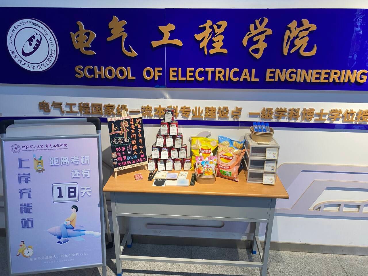 为第一时间解答考研学子复习期间关于复习计划、心态调整的疑惑,学院长期设立“研途空中加油站”,以邮件回复形式进行答疑和指导。为全力优化服务,学院在综合楼一楼大厅设立“上岸充能站”,摆放考研倒计时立牌,设立考研学习用品专柜,提供寓意“牛气冲天”和“曙光将至”的零食和饮品,用贴心爱心暖人心。为助力学生坚定信念、调整心态,学院开展“考研寄语树”暖心祝福活动,组织学院师生为备考学生写下充满祝福和鼓励话语的卡片,并在综合楼前展出,“星光不负赶路人,时光不负有心人”、“此战必胜,金榜题名”、“终将上岸,阳光万里”,考研学生纷纷表示会以踔厉奋发、勇敢拼搏的士气不断努力,在最后的冲刺阶段全力以赴,以最好的状态迎接考试。