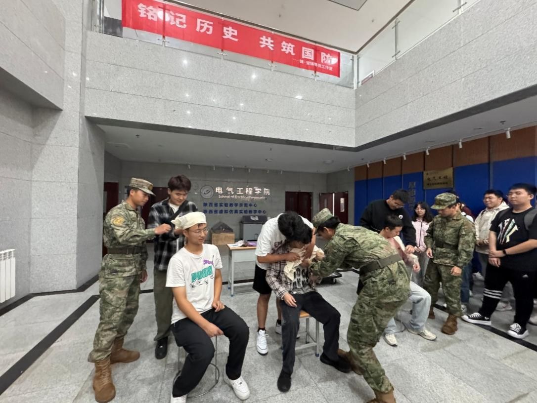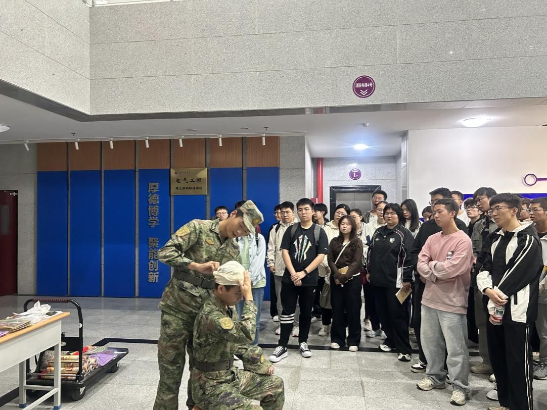 在演示结束后,现场学生还亲自实践急救技能,退伍大学生耐心指导,确保每位学生都能掌握正确的包扎方法。通过亲身体验,大家对急救知识有了更深刻的理解,增强了在紧急情况下冷静应对的能力。
