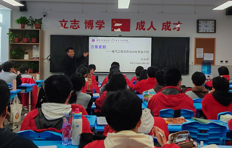 梁振锋老师以生动的语言和丰富的案例,详细介绍了电气工程及其自动化专业的发展与演变、学科特色、行业前景以及就业方向。结合当前我国新能源发展和各行各业用电量数据,引发学生对“电从哪里来”的思考,进而深入浅出地讲解了电力生产过程,巧妙引出该专业在新型电力系统、新能源发电、工业自动化等方面的重要作用,激发了学生对这一专业的浓厚兴趣。现场气氛热烈,学生们踊跃提问,梁老师一一耐心解答,并鼓励学生努力学习,为未来进入高校深造打下坚实基础。此次专业介绍不仅拉近了高校与中学之间的距离,解答了个人升学的疑惑,也为学生们提供了清晰的学业规划指引,使学生对未来的大学生活充满期待。