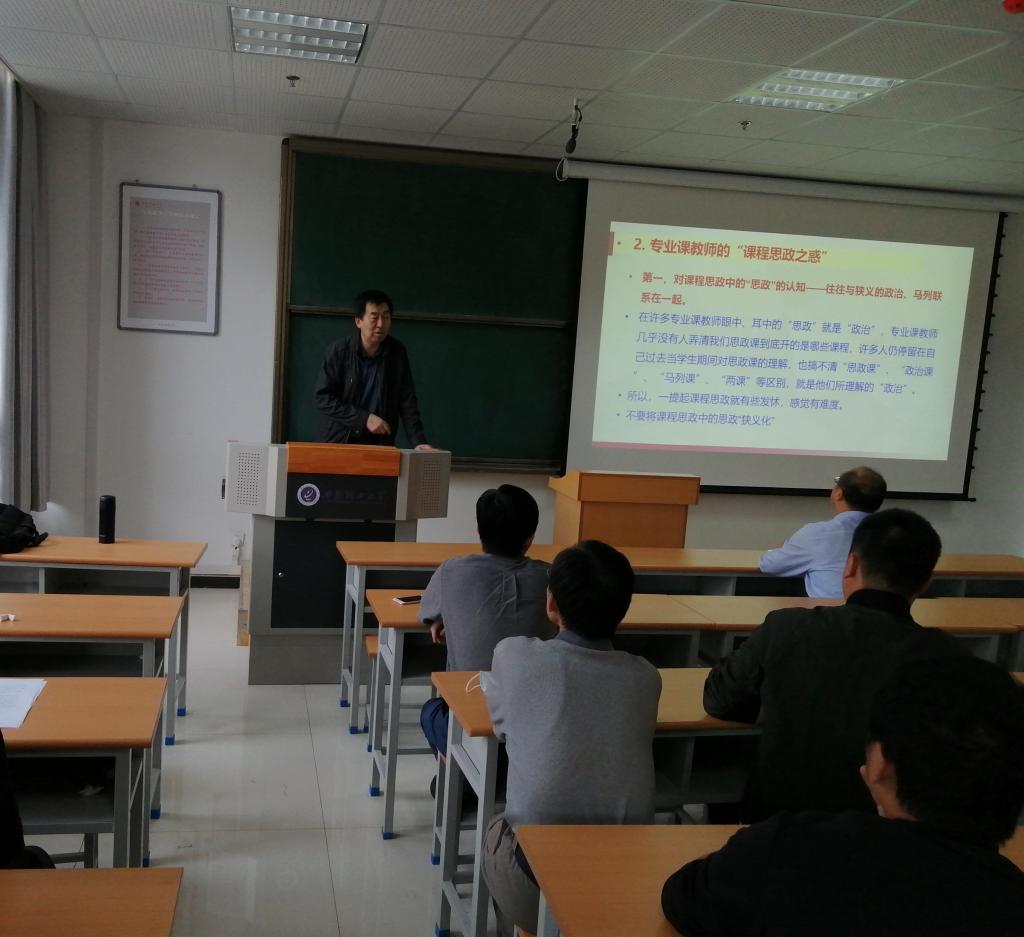 夏永林主要从“课程思政要干什么”和“专业课如何融入思政元素”两方面进行讲解。夏老师首先追根溯源,从理论角度阐述了“课程思政”的概念和发展历程,并介绍了上海交大等院校的特色做法,指出高校教育中思想政治内容融入专业教学课堂的必要性、紧迫性。接着,他强调课程思政不是将思政课程内容硬搬入专业课,而是将思想价值贯穿于整个教学过程,解决如何将“盐”溶于“汤”的问题,专业课程与思政元素有机融合,实现知识传授、能力培养和价值引领有机统一。最后,夏永林与在座教师进行了深度交流和互动。