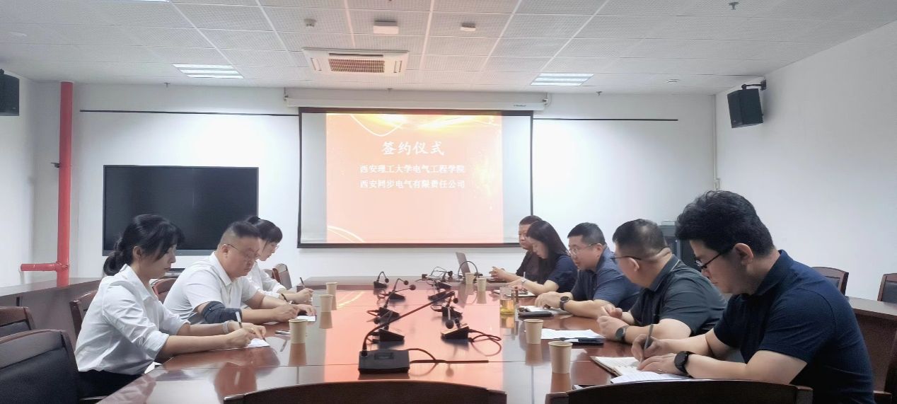 为面向国家电力能源安全战略建设发展需求,扎实推进校企合作,2024年8月,永利23411集团与西安同步电气有限责任公司在综合楼1211会议室举行校企合作重大项目签约仪式。校科技处新质生产力创新中心副主任王锵、永利23411集团院长贾嵘教授、西安同步电气公司董事长伊仁图太、永利yl23411集团下属西安智通自动化技术开发有限公司法人代表张兴华、永利23411集团项目负责人王建渊老师出席了本次签约仪式与座谈会,会议由王建渊老师主持。