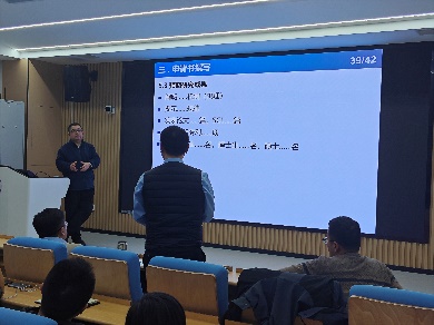 宋受俊教授首先从基金概况、评审流程、申请书撰写三个方面进行了详细分析及建议,特别强调了项目名称及背景的重要性,由此带来的第一印象会直接影响申报结果。随后,宋老师围绕摘要撰写、立项依据、文献综述、项目研究内容及研究目标、关键科学问题、研究基础呈现等关键点进行了个人撰写经验交流及技巧传授。多名与会老师向宋老师提出自己的疑问,如研究基础中实验平台如何展示可以达到最好效果、已有文献存在的问题如何在综述时更好的融入,取得了良好的交流效果。