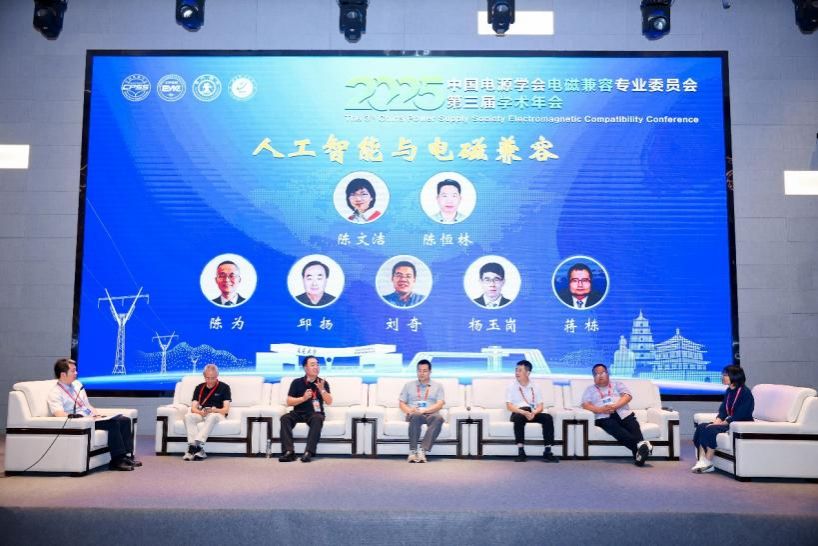 随后的圆桌论坛由陈恒林教授与陈文洁教授共同主持,邀请五位专家围绕“人工智能与电磁兼容”主题展开讨论,专家们围绕“人工智能与电磁兼容”的主题,结合自身研究经历,分享了磁性元件设计、滤波器设计与测试、建模、屏蔽等方面的科研经验,讨论了人工智能如何助力EMC优化设计,以及人工智能和大数据模型对电磁兼容研究带来的新思路、新方法,并鼓励年轻人在人工智与电磁兼容技术的交叉研究方面要大胆创新。